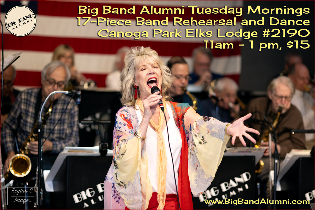 Join us for the Big Band Alumni’s Tuesday morning rehearsal in Canoga Park. Dance to a 17-piece big band and vocalists Bill A. Jones and Nancy Osborne. The fun begins at 11am. Our next rehearsal and dance is Tuesday morning, October 7, 2025. See you there!