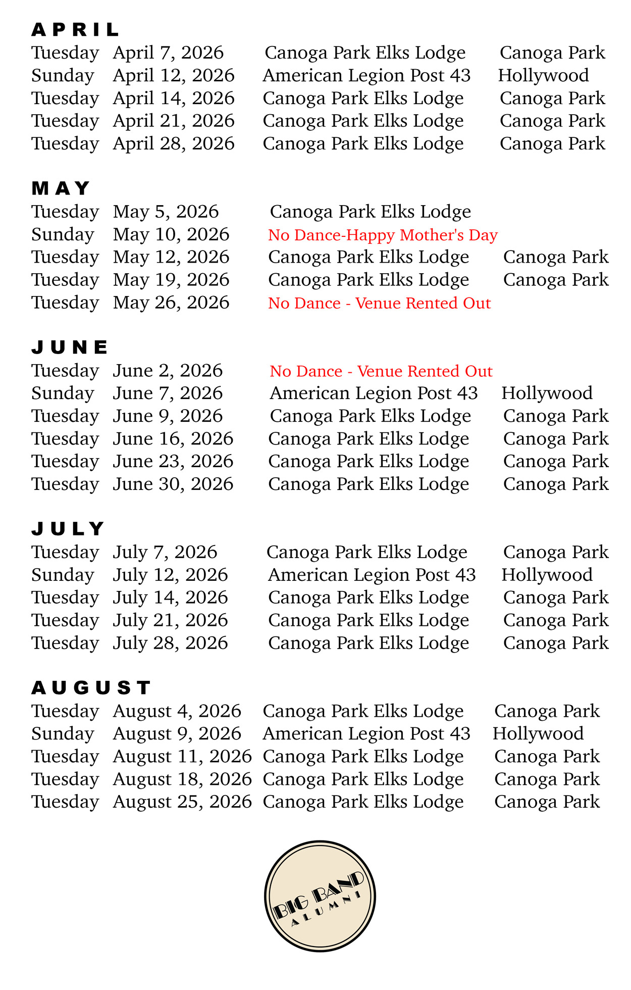 Calendar of Events Big Band Alumni Los Angeles Musical Events Calendar 2026 Big Band Alumni performance – Inspiring Notes Gala – Los Angeles, CA